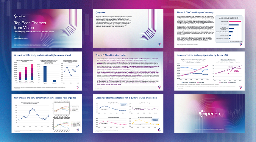 Experian’s Vision Conference, held Oct. 6-9, was an opportunity to connect and gain insight into how the economy and credit ecosystem are functioning. Check out Chief Economist Joseph Mayans’ key themes and takeaways from his conversations at Vision.